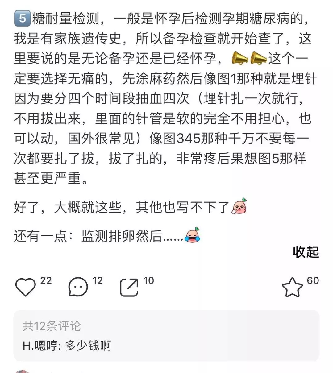 检查的前一天晚上8点后就不能再吃东西了;第二天还要忍受着肚子尖叫声,饥肠辘辘地奔向医院喝下一大杯甜到发齁的糖水;抽三次血扎三次针;万一中途吐了,还得下次重测……